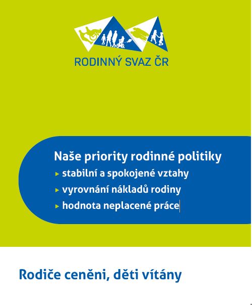 Rodinný svaz ČR, střešní organizace Národního centra pro rodinu, si je vědom své advokační role ve prospěch rodin v České republice. Po čtyřech letech opět vydal leták Dluhy státu vůči rodině II.s hlavními prioritami rodinné politiky a návrhy opatření k dosažení těchto priorit.